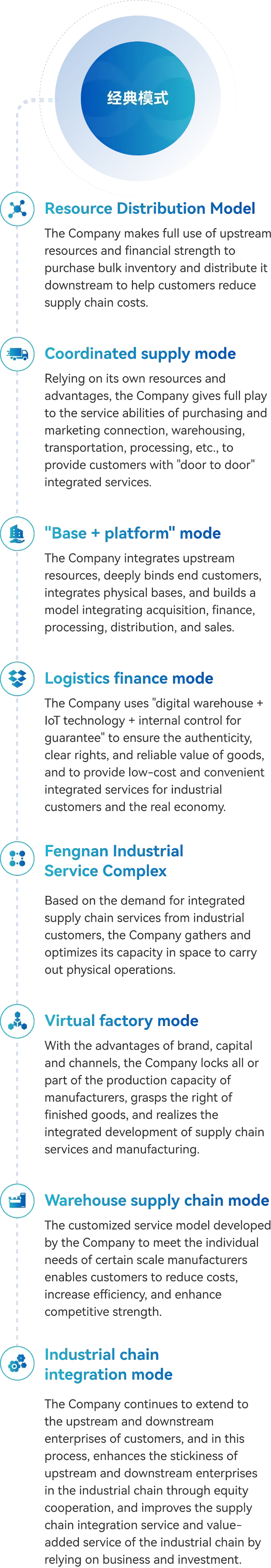 The Company belongs to the production-oriented service industry, providing comprehensive, multi-level, and personalized supply chain integration services for industrial customers.